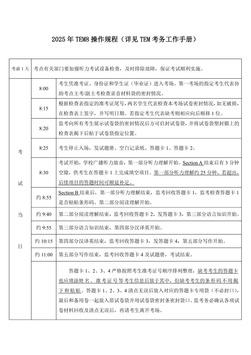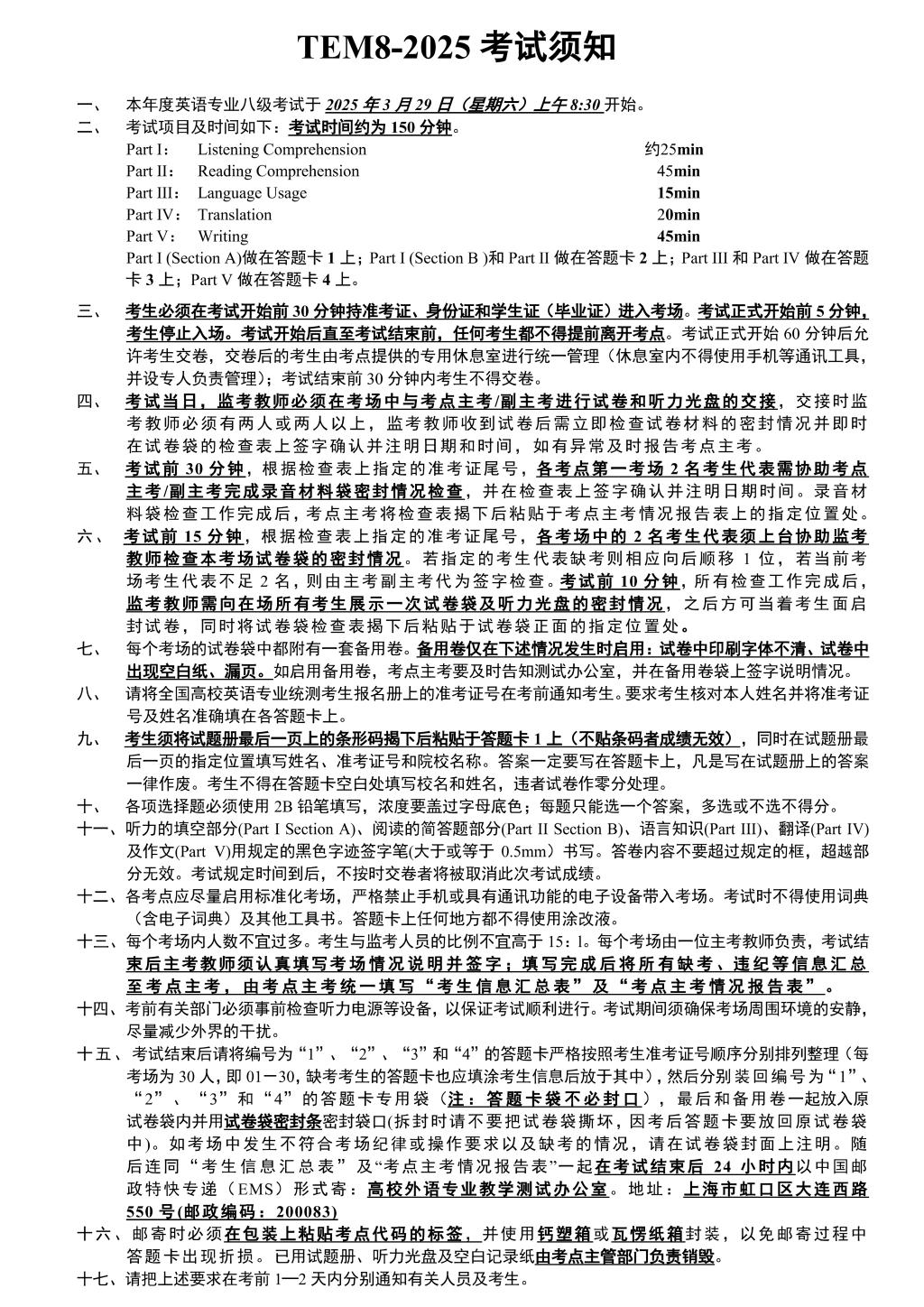 本次 TEM8 考试考场设置在taptap点点体育大学道南校区2 号楼 1-2 层,请各位考生务必在 考试当天于 8:00-8:25进入考场,8:25 以后不得入场。已毕业学生凭身份证和准考证进入南 院门口。