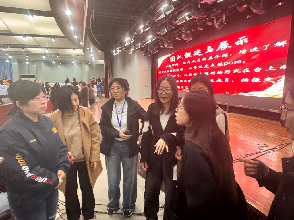 “国培计划(2024)”小学英语骨干教师培训开班仪式结束后,班主任组织全体参训教师开展了团建活动。参训教师们结成小组、相互介绍、增进了解。各小组围绕团队名称、口号及独特pose的设计展开热烈讨论。