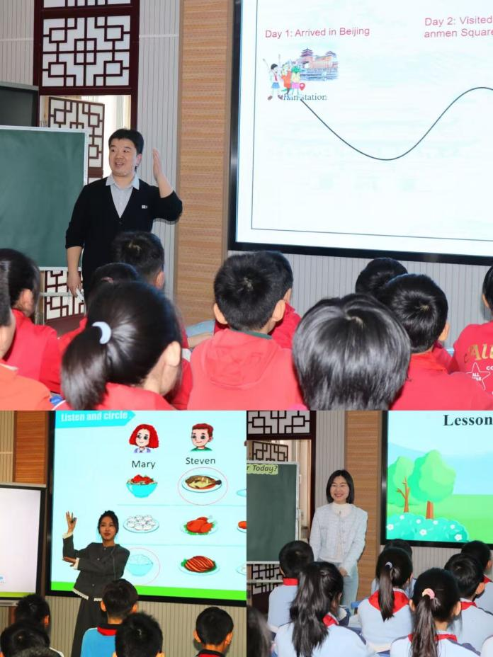 外国语实验小学校长马艳春校长致辞,介绍了学校概况以及办学理念,接下来由三位教师分别带来三节课:李瑞老师执教的《冀教版小学英语三下Unit 2 Review&新标准Unit3 Yummy Food》、王靖波老师执教的《冀教版小学英语五下Unit 2 Lesson 9 The Palace Museum》、刘双老师执教的《冀教版小学英语四年级下册Unit2 Lesson 11How's the Weather Today?》在此次活动中,唐山外国语实验小学的三节课,以创新的教学理念、多元的教学手段,深度践行“一核二维三融合”的学校教育理念,为小学英语教学提供了极具价值的参考范例。