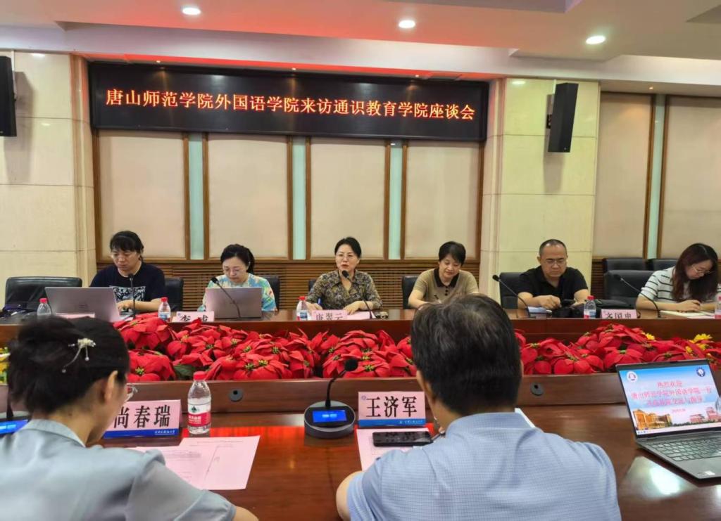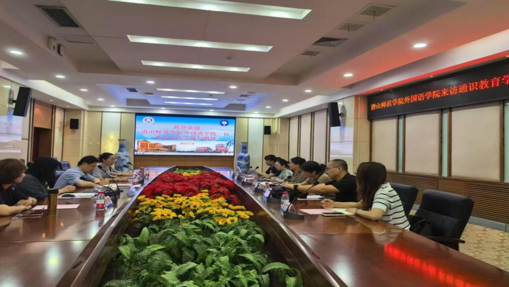 2025年5月30日上午,taptap点点体育唐翠云院长带领大学英语教学团队一行六人,访问天津外国语大学通识教育学院,双方在逸夫楼莎翁厅举行了校际交流座谈会,重点围绕技术赋能教材研发、大学英语教学改革、人工智能赋能外语教学等核心议题展开深入研讨。会议由通识教育学院副院长尚春瑞主持,天津外国语大学教务处处长、通识教育学院院长王济军教授及各通识教育学院各教研室主任出席了座谈会。