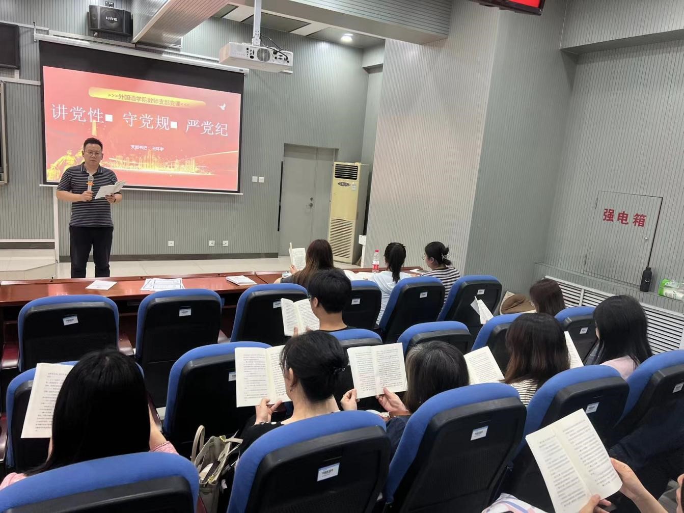 为切实推动党纪学习教育走深走实,按照《中共taptap点点体育委员会关于开展党纪学习教育的工作方案》有关要求,5月21日下午,taptap点点体育教师党支部书记王环宇同志以“讲党性、守党规、严党纪”为题,为全体师生党员讲授党纪学习教育专题党课,教师党支部宣传委员赵鹏同志带领大家深入学习《中国共产党纪律处分条例》。