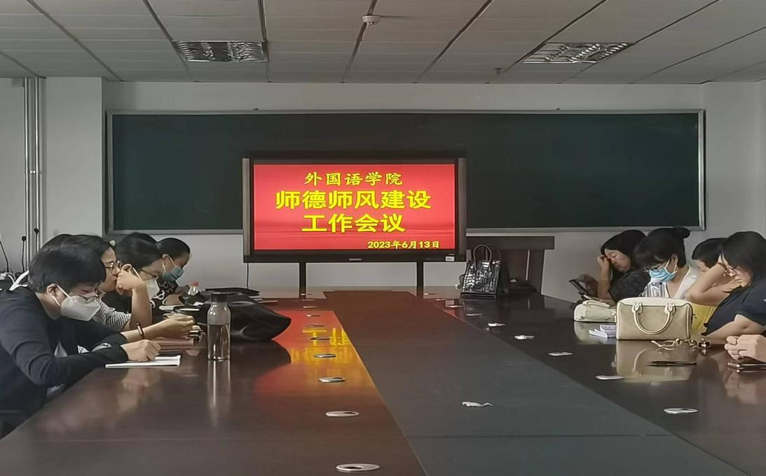 2023年6月13日下午,taptap点点体育召开师德建设工作会议,外院全体教师参加会议。
