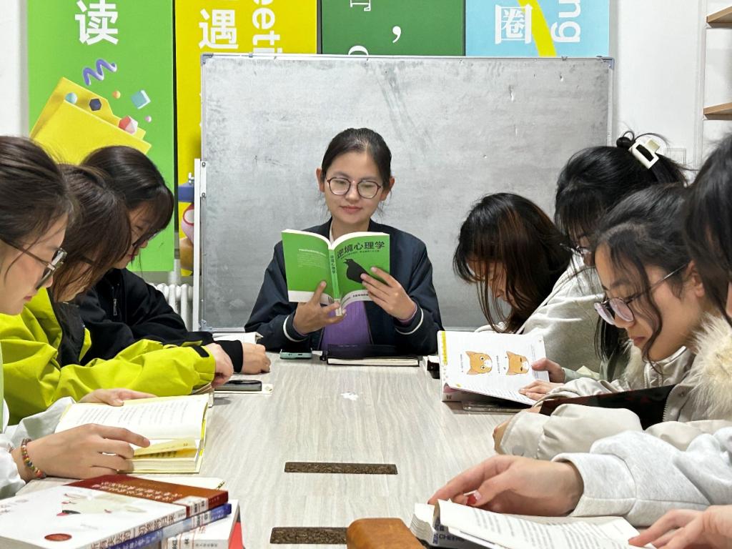 同学们选取自己感兴趣的心理书籍进行阅读,在字里行间探寻人性的幽微,于墨香四溢中开启一场场与自我、与他人心灵深度对话的奇妙旅程。阅读环节结束后,进入分享交流阶段。同学们踊跃发言,结合自身经历,分享书中令自己深受启发的片段。现场讨论热烈,思维碰撞出绚丽火花,同学们从彼此的分享中获得新的思考与前行的力量。