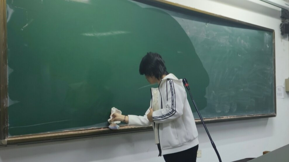 在持续三天的行动中,外院青协志愿者们尽心尽力,每天打扫教室,保持教室干净卫生。他们不仅实现教室环境提升,更注重人文关怀:为每张课桌配置便签袋,方便师生存取文具;在黑板上绘制双语励志标语,营造学习氛围。