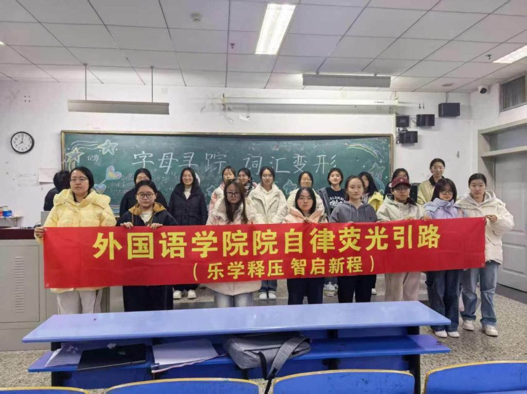 “字母寻踪”会选取四六级核心词汇、高频考点词设计挖空题目,涵盖首字母、尾字母及中间关键字母缺失等多种形式。通过小组抢答、限时作答的方式开展,既能快速检验单词拼写熟练度,又能在紧张有趣的竞赛氛围中强化记忆,让记单词告别枯燥机械,越玩越上瘾。“词汇变形创意坊”围绕同一词根拓展名词、动词、形容词、副词等多种词性变形,结合例句解析不同词性的用法差异。设置“词性接龙”“句型改写”等互动任务,让同学们在实践中掌握词性转换规律,不仅能让词汇学习更牢固,还能提升语言表达的灵活性,助力语感培养与翻译能力提升。分享记忆方法鼓励现场同学交流个人记单词的独特经验。通过思维碰撞汇总高效记忆策略,帮助大家找到适合自己的学习方法,解决单词记不牢、易混淆、忘得快等难题。