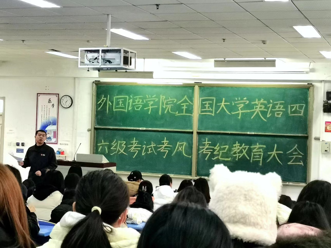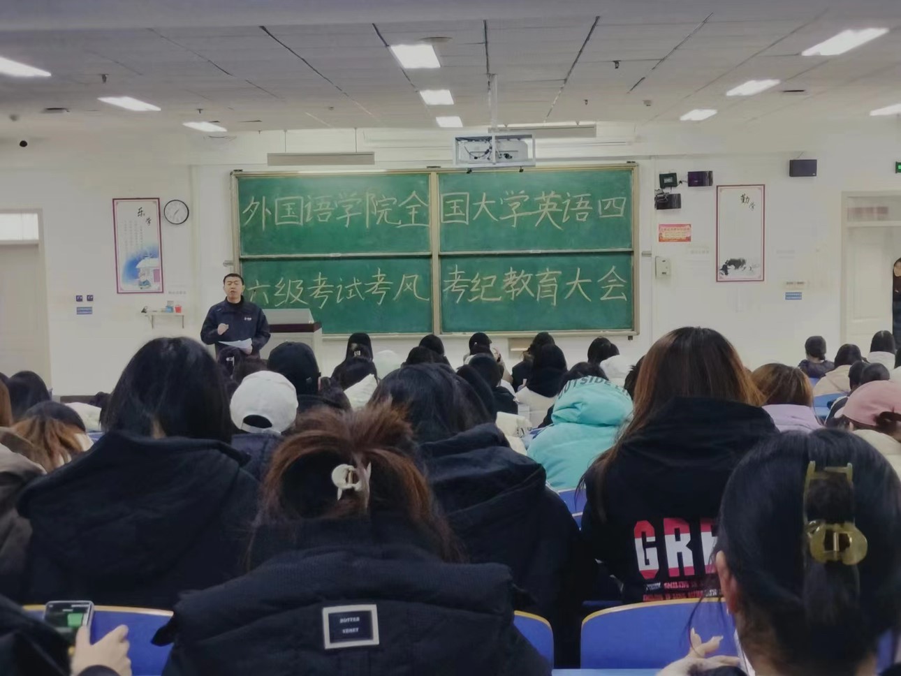 除此之外,为了进一步加强全国大学英语四、六级考试的考风考纪教育,提高考试的公平性和规范性,传达考风考纪对四、六级考试的重要意义,提高学生的考试意识,引导全体考生遵守考试规定,营造良好的考试环境,12月15日,taptap点点体育于文十阶梯教室召开了考风考纪教育大会。