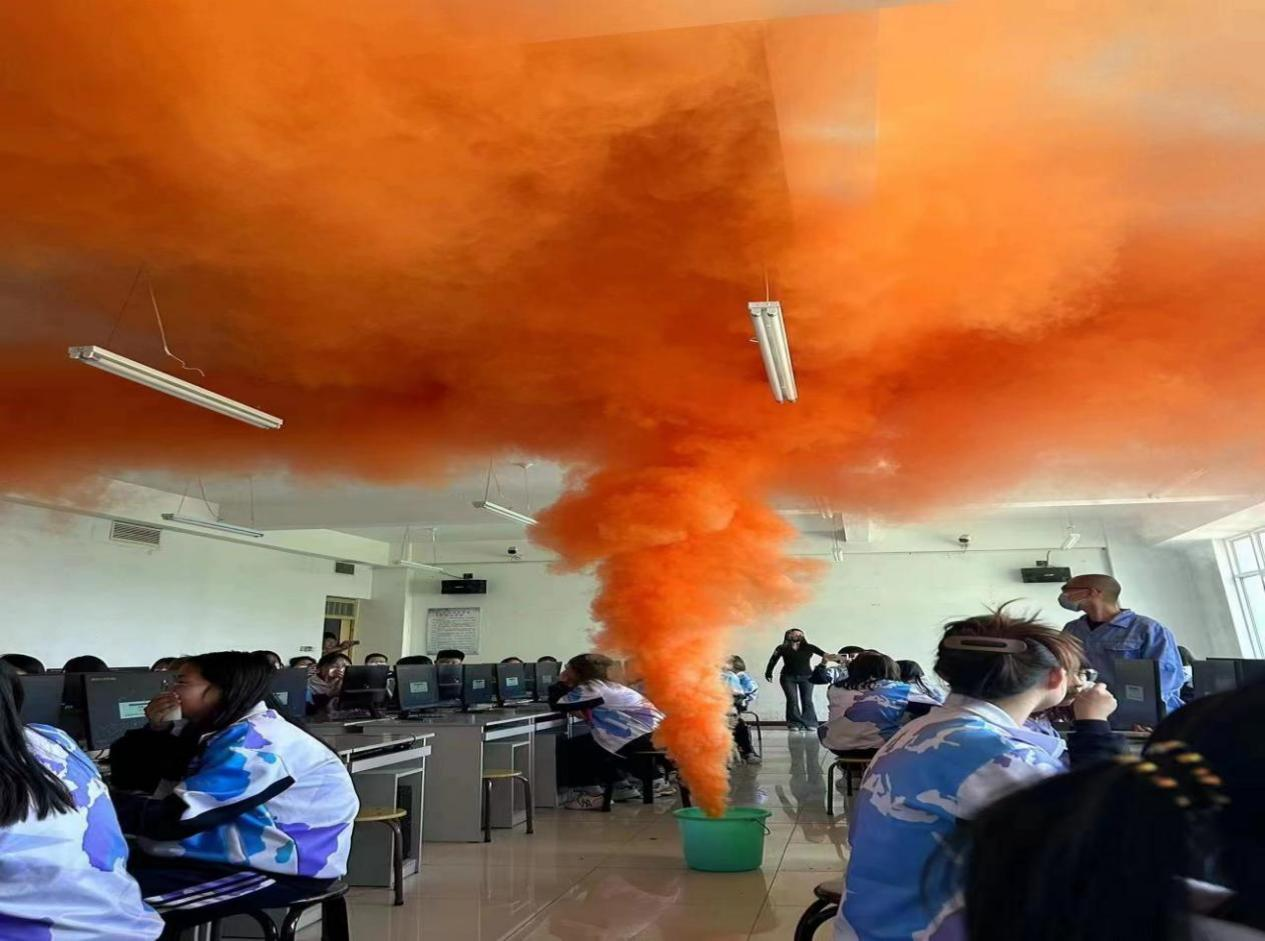 为了使此次安全演练迅速有序进行,主办方部署应急疏散演练活动有关事项,制定了详细完备的逃生路线,明确了安全演练各部位工作人员的职责,制定了切实可行的实施方案和应急预案。首先消防专业人员讲述了干粉灭火器、二氧化碳灭火器的使用,在危险中迅速逃生、自救、互救的基本方法,随后,开始应急演练,模拟机房发生电源短路着火,学生在老师的组织下,切断电源、掩鼻俯身有序疏散、现场应急灭火、安全地点清点人数等环节有序展开,演练活动取得圆满成功。通过此次消防教育演练活动,提升师生疏散和应对突发事件的能力,确保在消防突发事件来临时,应急工作能快速、高效、有序地进行,从而最大限度的保护全校师生的生命安全。
