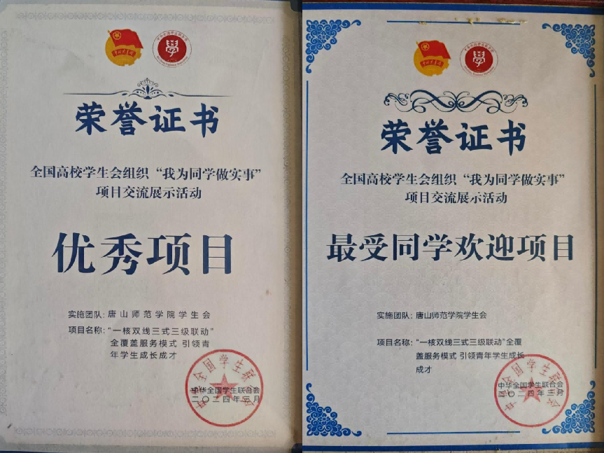 在权益维护中心,王煜帆是创新服务的先锋。他独创“问题灌溉系统”,构建起宿舍报修、食堂建议、环境优化等30类问题的直达解决通道,高效解决同学们的生活难题。在全国高校服务项目评选中,他的项目更是脱颖而出,荣获“最受欢迎奖”和“国家级优秀项目”两项殊荣,为校园服务树立了榜样。