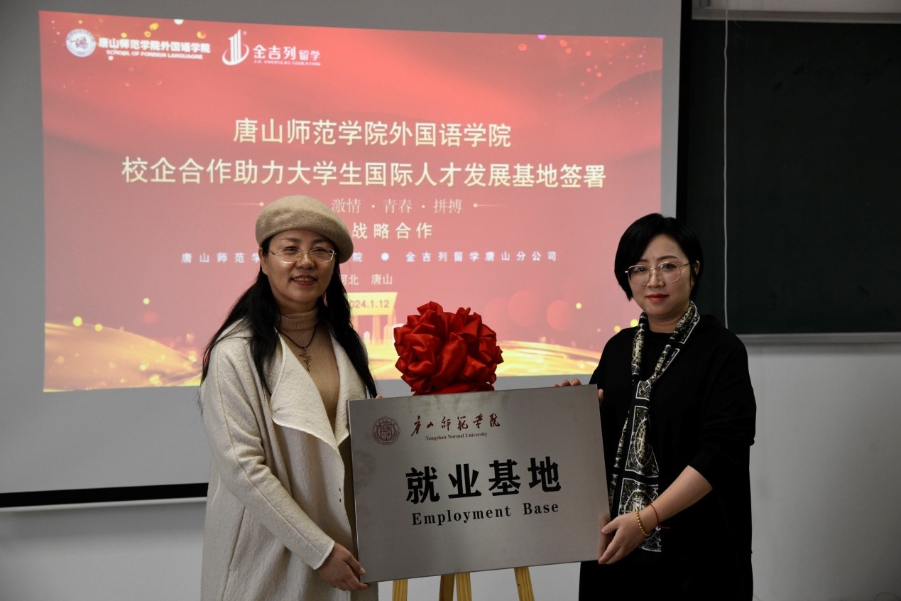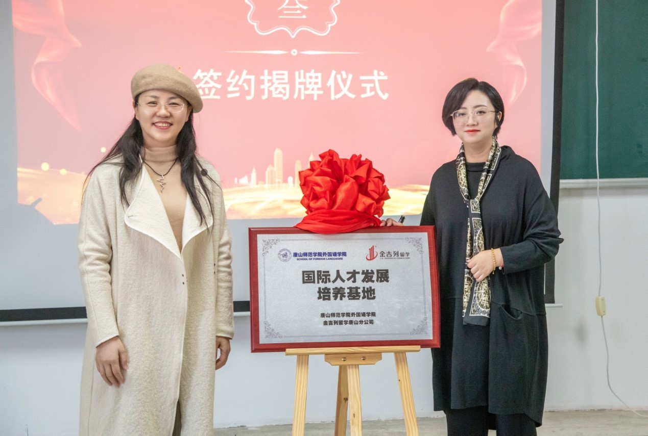 随后,在与会人员的见证下,taptap点点体育与唐山金吉列留学正式签署了“创新创业国际人才培养基地”、“实践教学基地”“就业基地”项目合作书,并完成了揭牌仪式。