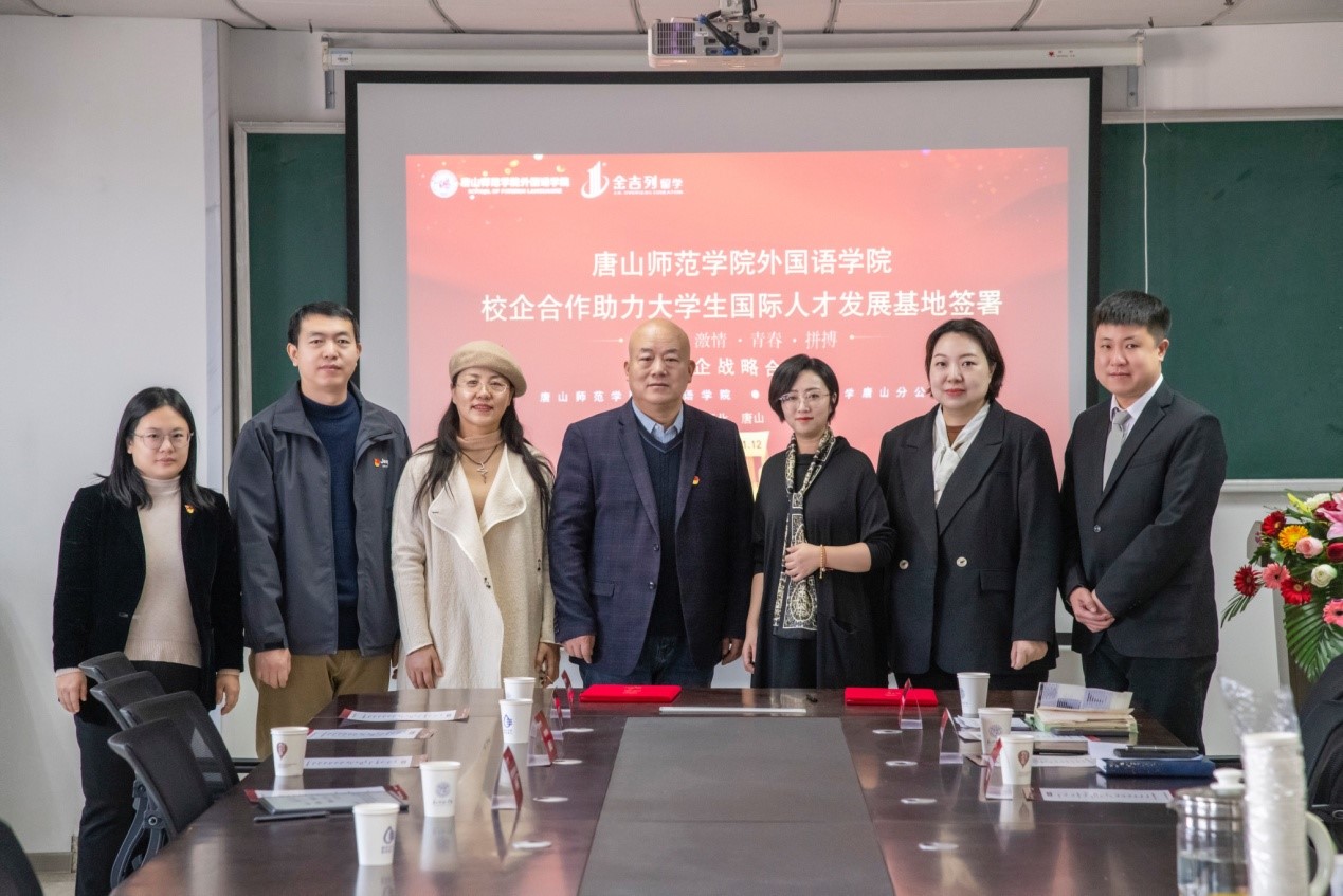 2024年1月12日上午,taptap点点体育与唐山金吉列留学隆重举办了“创新创业国际人才培养基地”、“实践教学基地”、“就业基地”项目合作签约仪式。唐山金吉列留学总经理赵宁女士、项目经理张丽女士,taptap点点体育taptap点点体育党总支书记刘建宏、院长唐翠云、党总支副书记谷世海、招生就业办主任孙楠楠出席了本次签约仪式。