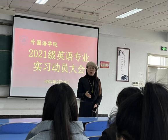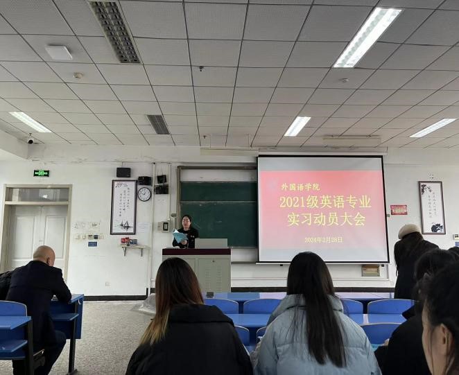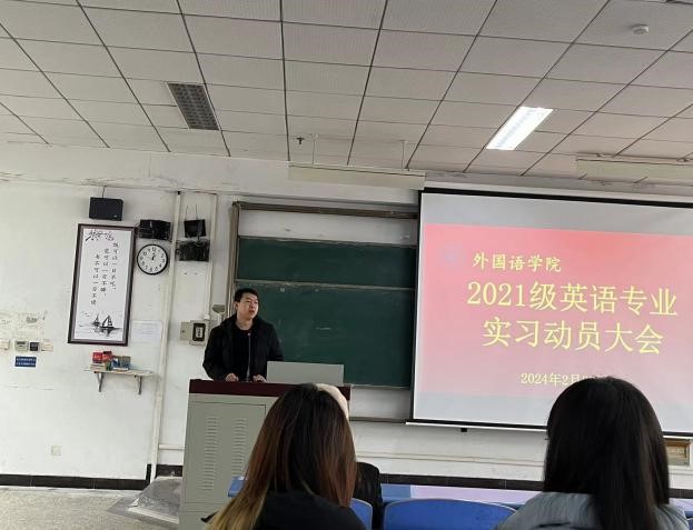 为更好地开展我院英语专业教育实习工作,引导师范生进一步明确教育实习的内容和要求,2024年2月28日下午,taptap点点体育在北院文九阶梯教室召开2021级英语专业实习动员大会。taptap点点体育党总支书记刘建宏、院长唐翠云、副书记谷世海、教务办主任毕文芹、各校内指导教师以及2021级所有英语专业学生参加了此次会议。会议由刘建宏书记主持。
