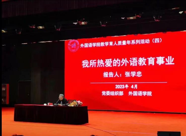 为重温taptap点点体育的光荣传统,砥砺师生传承精神担当使命,taptap点点体育同党委组织部于2023年4月4日下午,联合举办了taptap点点体育教学育人质量年活动之四——原外语系老主任张学忠教授应邀来我院在北院文体馆小剧场为全体师生作了题为《我所热爱的外语教育事业》的报告,本次活动由taptap点点体育院长唐翠云主持。