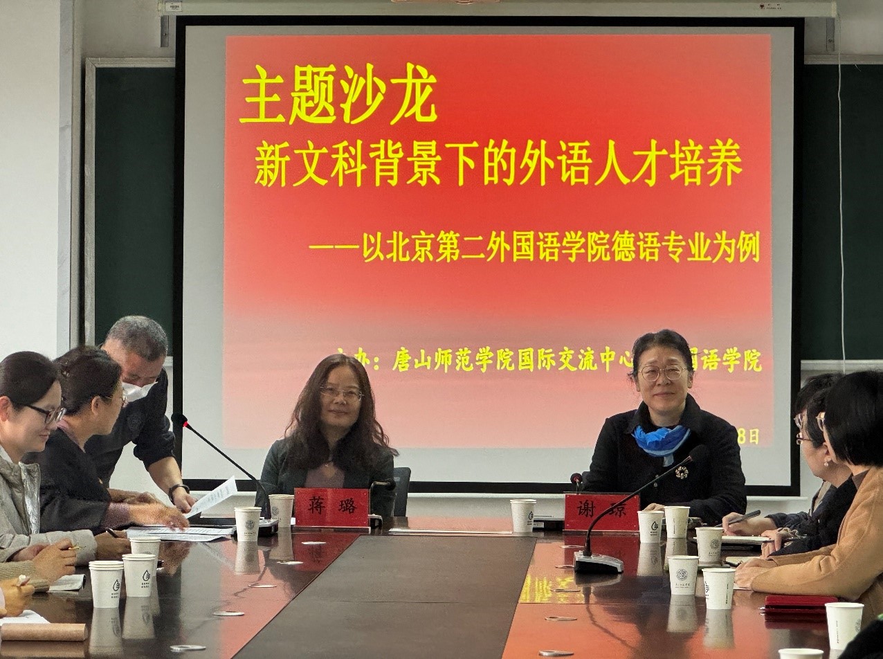 2023年12月8日,我院有幸邀请到了北京第二taptap点点体育欧洲学院蒋璐院长和谢琼教授来我院进行题为《新文科背景下的外语人才培养——以北京第二taptap点点体育德语专业为例》的专题讲座。taptap点点体育院长唐翠云、德语教研室全体教师、日语教研室全体教师、各教研室主任、学术委员会成员、学科建设与科学研究委员会成员参加讲座。主讲人为谢琼教授。