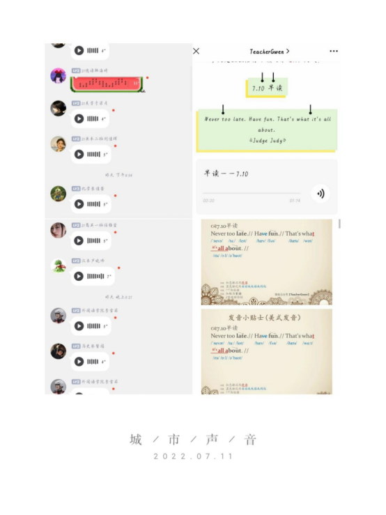 为调动学生假期学习英语的积极性,提高学生的自主学习能力,由校英语协会举办的优美句子英文朗读活动于7月9日正式举行,7月10日下午圆满结束。