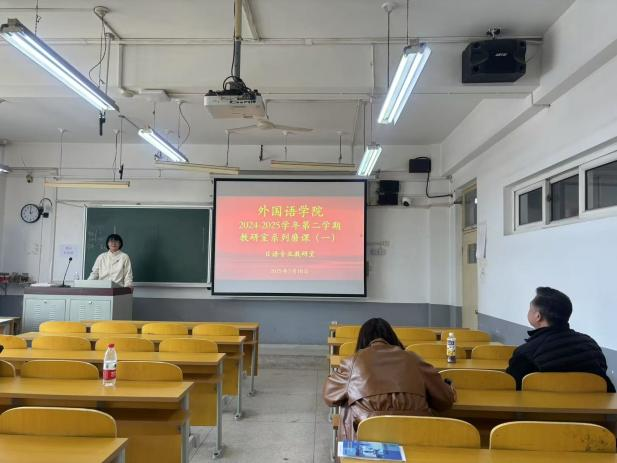 王丹丹老师率先进行《高级日语(二)》示范授课,通过“情景导入-文化对比-任务驱动”三维教学设计,生动展示了跨文化交际视角下的高级日语课程的教学创新。