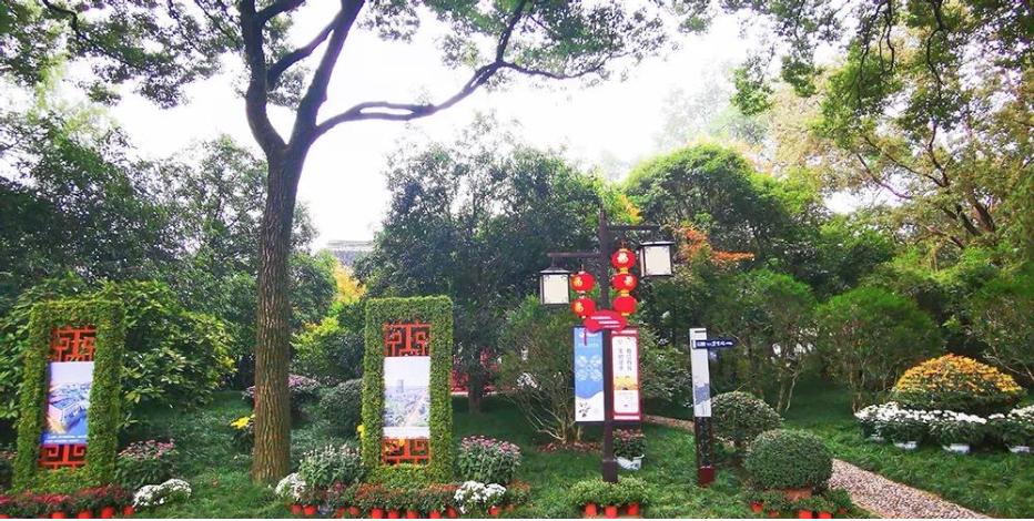为展望和见证松江近年来在建设科创、人文、生态的大环境中一步一个脚印,求真务实,努力打造绿水青山就是金山银山的美好愿景,公园在主干道两侧以十二幅“屏风”配以松江老照片、造型菊等布置成一条“继古开今”的时光隧道,同学们在感受金秋菊韵的同时,更有在松江历史长河中穿梭之感。