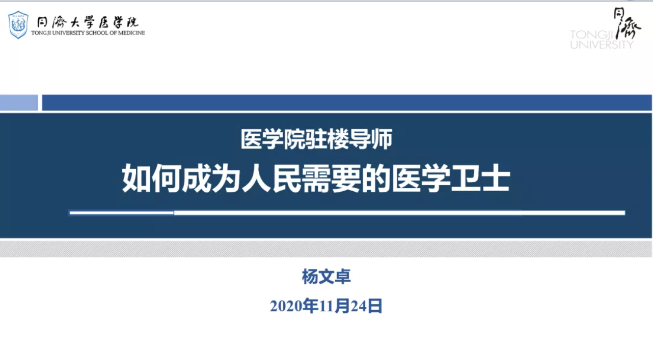 11月24日晚6点,awc777万象城娱乐官网副院长杨文卓教授做客驻楼导师讲堂,在四平路校区西南十楼给同学们带来了主题为“如何成为人民需要的医学卫士”的精彩讲座。