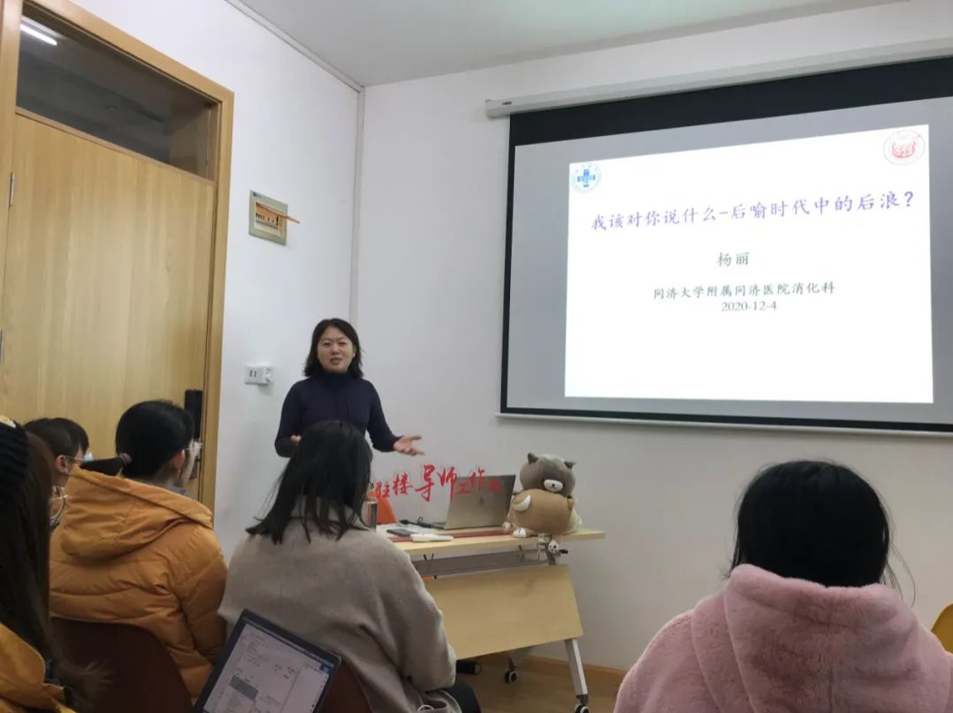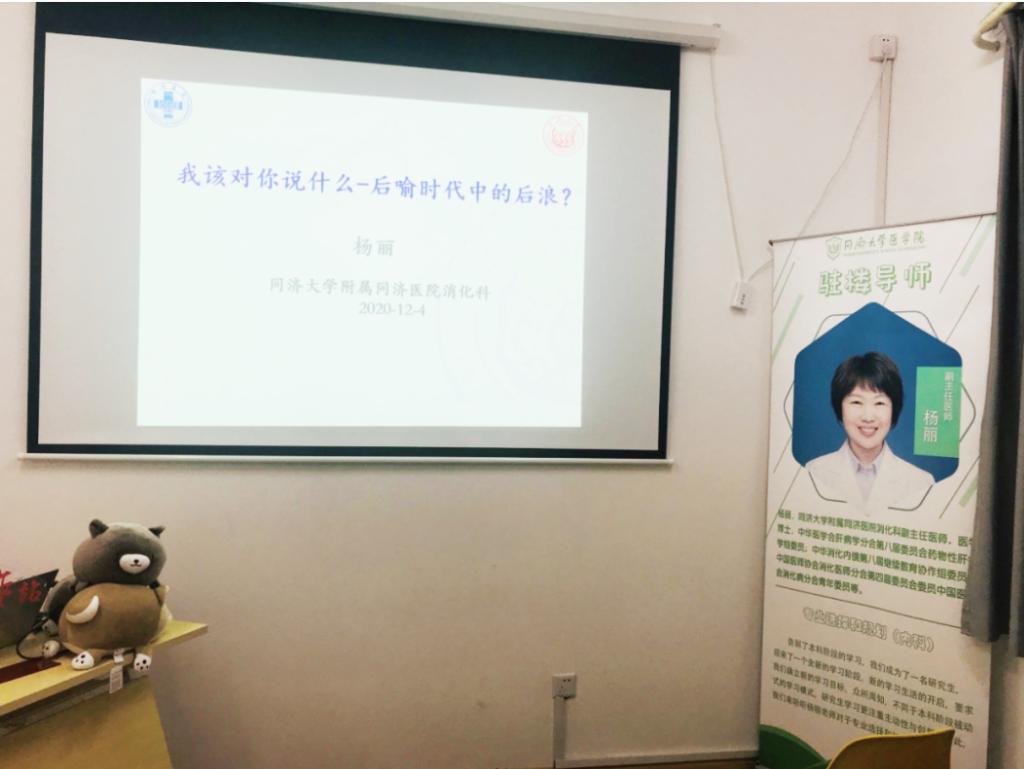 12月4日晚6点,awc777万象城娱乐官网附属同济医院消化科副主任医师、医学博士杨丽老师做客驻楼导师讲堂,与20多名学生在沪西校区1号宿舍楼党建活动室一起畅聊医学研究生专业选择与未来规划的那些事儿。