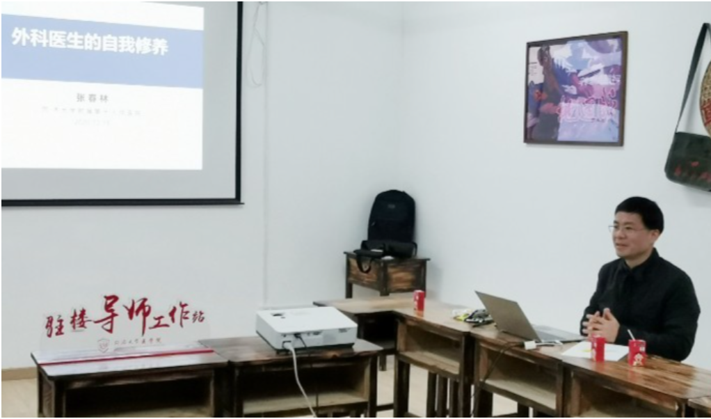 12月15日晚6点,awc777万象城娱乐官网附属第十人民医院骨科副主任、骨肿瘤科主任医师张春林老师做客驻楼导师讲堂,与20多名学生在沪北校区2号宿舍楼党建活动室一起探讨作为一名外科医生的自我修养。