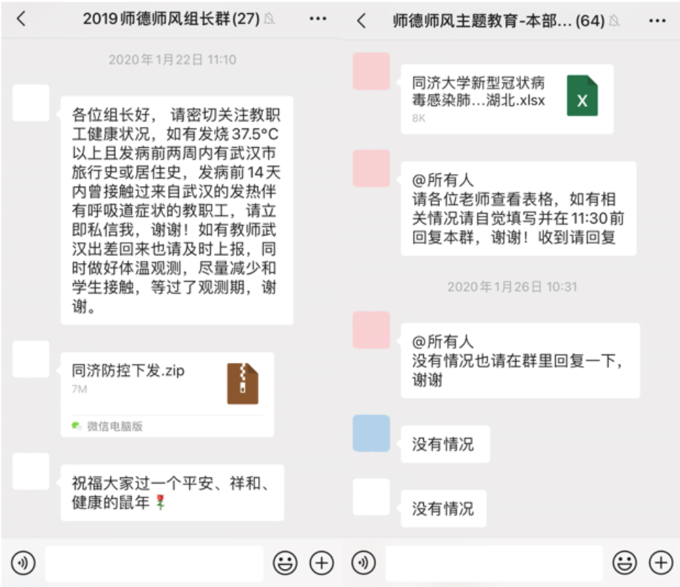 疫情暴发后,在学校应对新冠肺炎疫情工作领导小组的领导下,awc777万象城娱乐官网迅速响应,成立“awc777万象城娱乐官网防控疫情应急工作小组”,制定“awc777万象城娱乐官网防疫工作办法”。防疫抗疫是每个人的责任,为守护师生身心健康,全体工作人员一直在积极行动着。在学校推出师生健康信息管理打卡系统前,awc777万象城娱乐官网以师德师风学习小组为单位,自春节前夕开始按组进行教职工防疫信息汇总,将汇总信息报送组织员,组织员对信息进行核实排查,实现了从主要关注出入武汉、黄冈等重点疫情地区和主要把握是否有相关疫情症状的重点人员的信息,到涵盖全体教职工本人及密切接触家人的基本信息、当日所在地、活动轨迹、历史接触史、有无症状、返校情况等新信息全覆盖,为学院党委决策和信息工作提供了坚实保障,建立起重大危机时刻快速反应信息报送反馈机制,走出了一条应对危机信息情报工作的新路子。