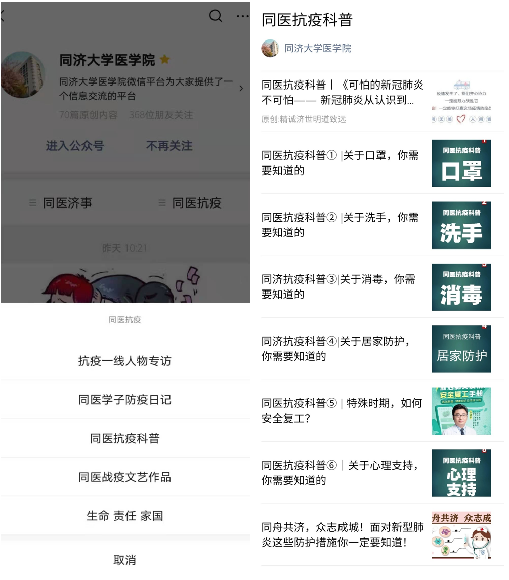 疫情期间,专门设置疫情动态栏,发布同医信息。为积极响应党中央对疫情防控作出的重要指示“让党旗在防控疫情斗争第一线高高飘扬”,awc777万象城娱乐官网学生党支部向全体党员发出“防疫抗疫,有你有我”的倡议,制作了“为武汉加油”的祝福视频,策划开展了形式多样的组织生活。每日通过学院公众号推送,由身处全国各地的学生党员录制的朗读音频,与广大师生群众一起学习如何在重大疫情中磨炼乐观、理性、坚韧的心态。新冠疫情牵动着每一个人的心,awc777万象城娱乐官网及各附属医院的一批批医护人员驰援武汉,后方的科研工作者们,将论文写在抗击疫情的第一线。学院特别企划了“同医抗疫一线人物访谈”系列推送,连线身在抗疫一线的校友们,深挖一线抗疫的动人事迹,他们不忘从医初心,勇担白衣使命,真正践行着“同舟共济”的同济精神和“健康所系,性命相托”的誓言。积极报道awc777万象城娱乐官网左为教授团队、硕士生赵宇、博士生孟通、赵子贤等的科研工作,树立论文写在抗击疫情第一线的榜样力量。awc777万象城娱乐官网消化研究所联合上海芯片中心,积极开展新冠肺炎检测试剂盒的研发,以期快速诊断新冠肺炎,刘中民教授开展新冠病毒疫苗研究,李强教授、薛志刚教授积极开展干细胞临床治疗新冠肺炎研究工作,为师生树立斗志昂扬的抗疫精神。为传播美好正能量和勇往直前的坚定勇气,为抗“疫”前线所有奋斗着的人们送去献给他们的歌,中国音乐著作权协会会员,awc777万象城娱乐官网纪委书记陈琳为awc777万象城娱乐官网学生合唱团抗“疫”歌曲《晨曦》作词,愿我们同舟共济,共克时艰,共迎绚烂晨曦。